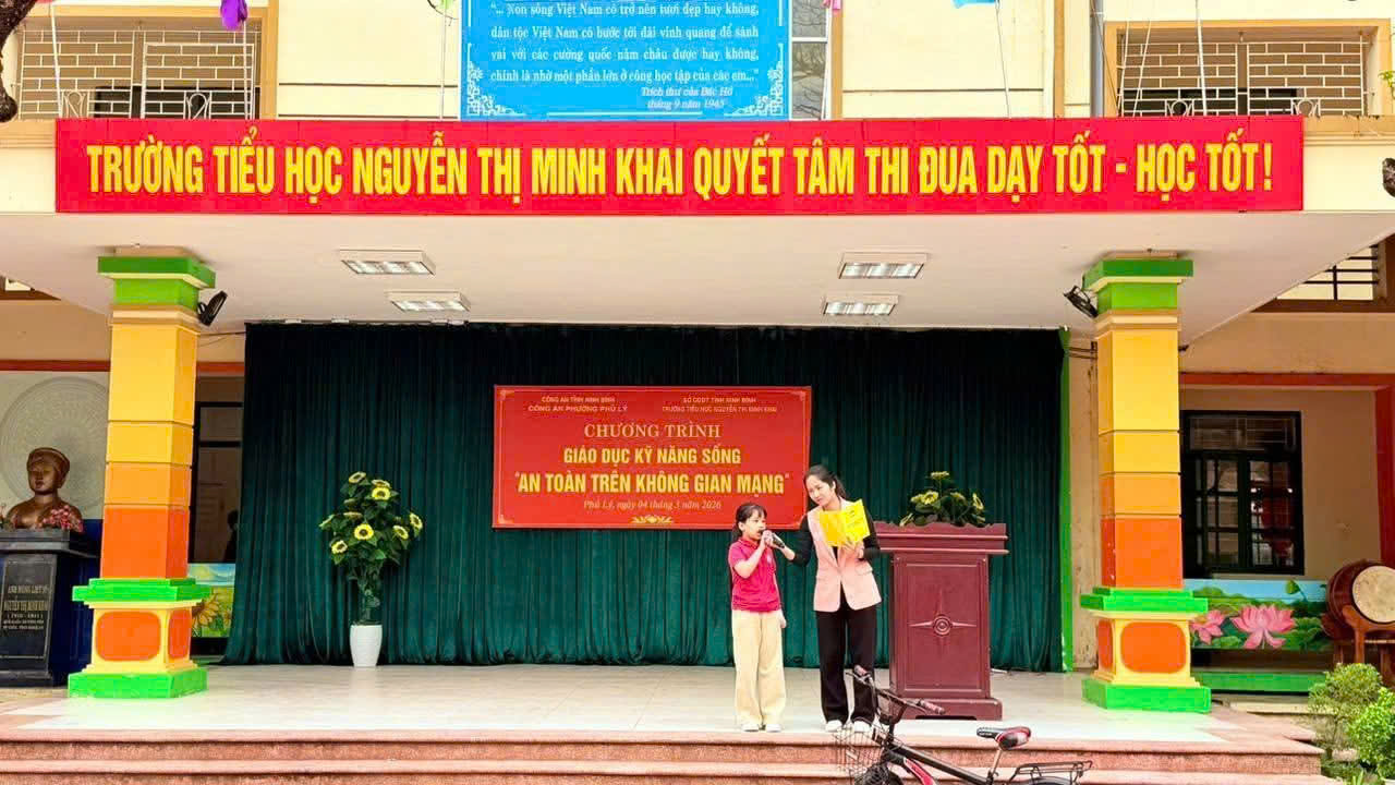 Nhằm trang bị cho học sinh những kiến thức và kỹ năng cần thiết khi tham gia môi trường mạng, sáng nay, ngày 4/3/2026, trường Tiểu học Nguyễn Thị Minh Khai đã tổ chức chương trình giáo dục kỹ năng sống với chủ đề “An toàn trên không gian mạng”. Chương trình diễn ra sôi nổi, thiết thực và mang nhiều ý nghĩa giáo dục sâu sắc.